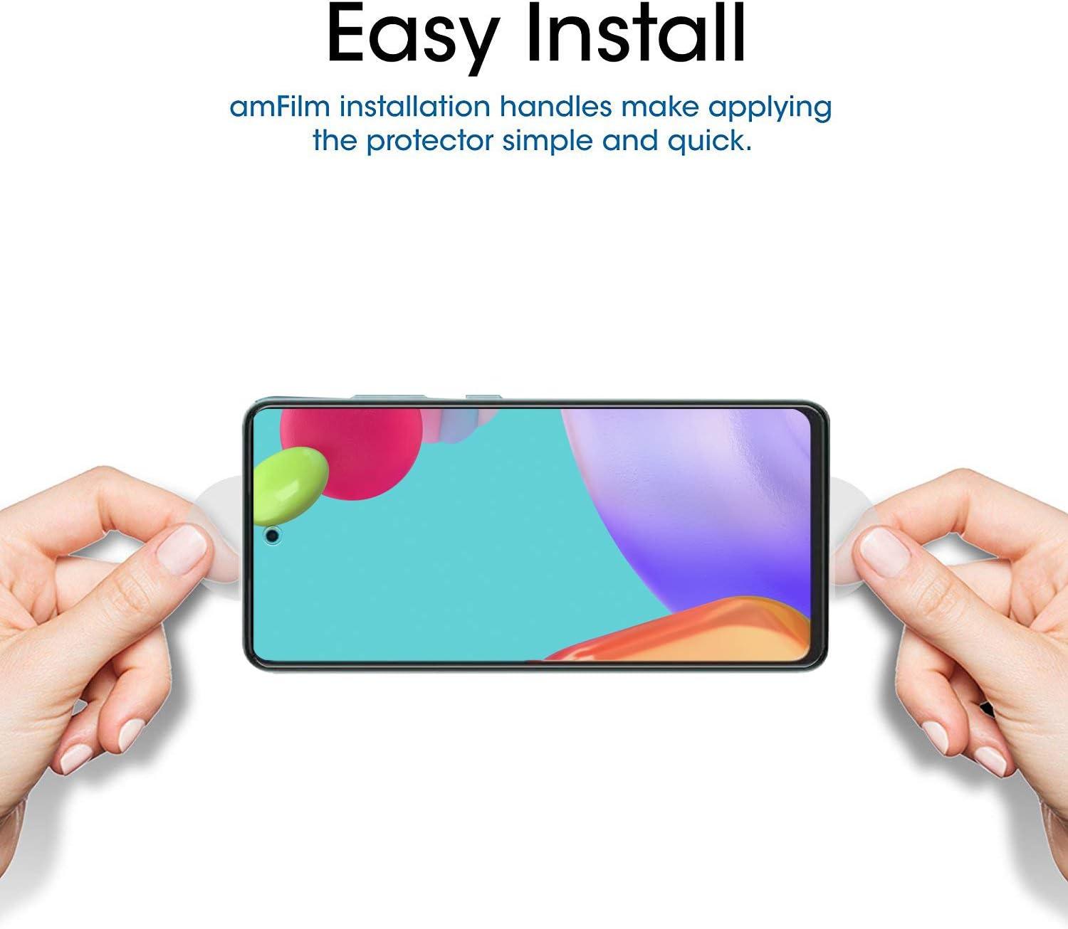 amFilm (3+2 Pack) 9H Tempered Glass Screen Protector and Camera Lens Protector for Samsung Galaxy A52 with Easy Installation Handles, HD Clear, Anti-Scratch Bubbles-Free