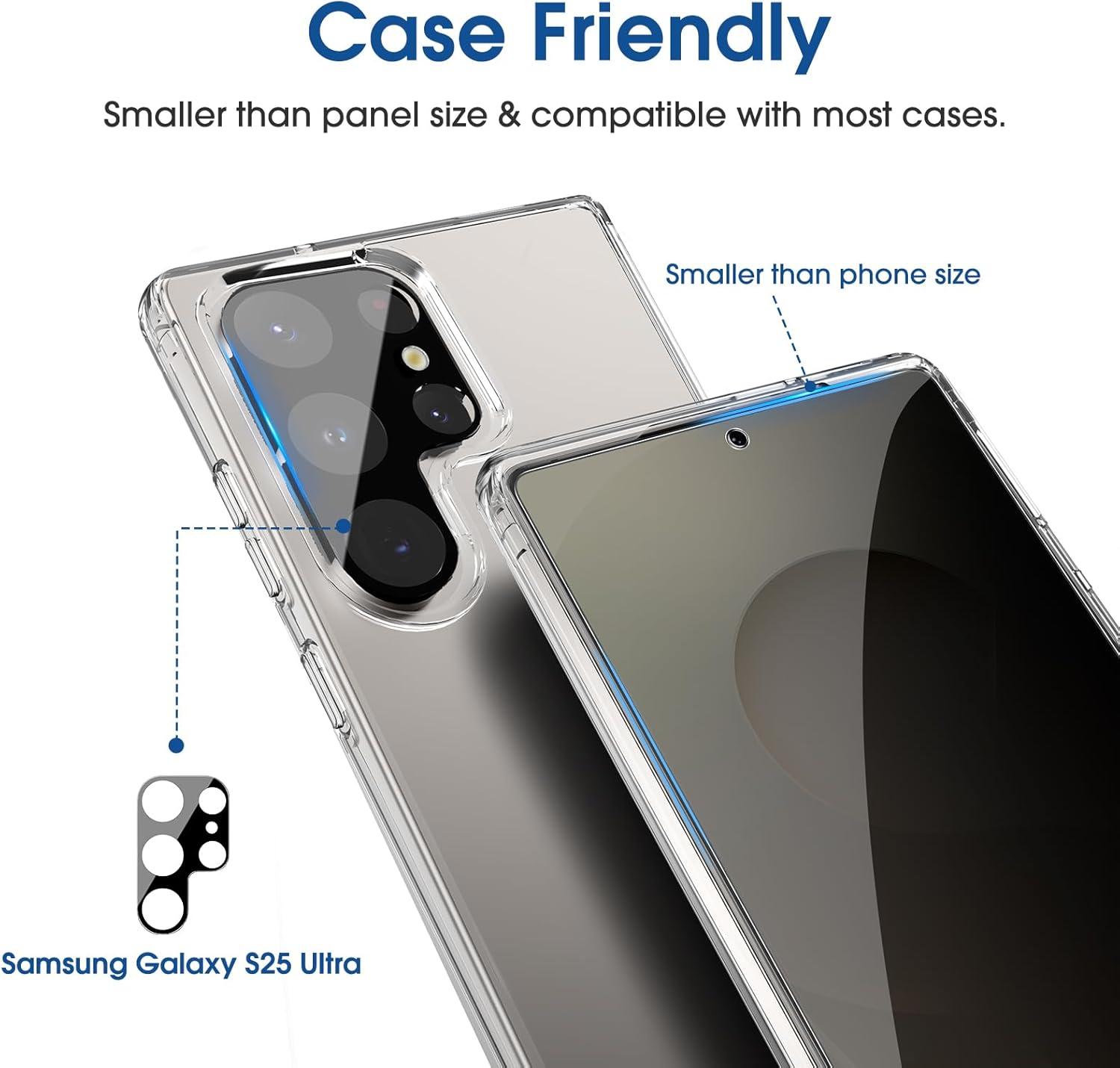 amFilm Auto-Alignment OneTouch for Samsung Galaxy S25 Ultra 6.9'' Privacy Screen Protector + Camera Lens Protector, Tempered Glass, Bubble Free, 30 seconds Installation, Privacy Protection 2+2 Pack
