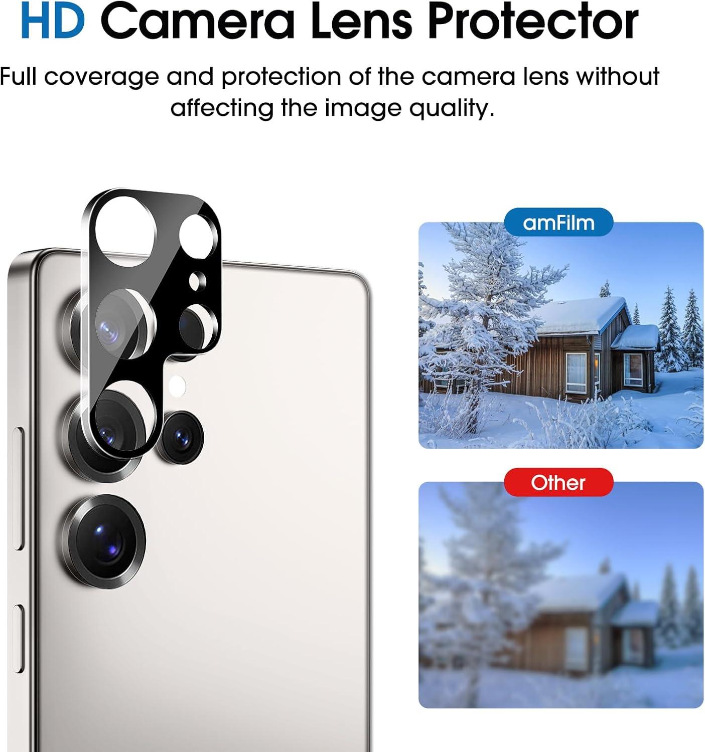 amFilm Auto-Alignment OneTouch for Samsung Galaxy S25 Ultra 6.9” Privacy Screen Protector + Camera Lens Protector, Tempered Glass, Bubble Free, 30 seconds Installation, Privacy Protection 2+2 Pack