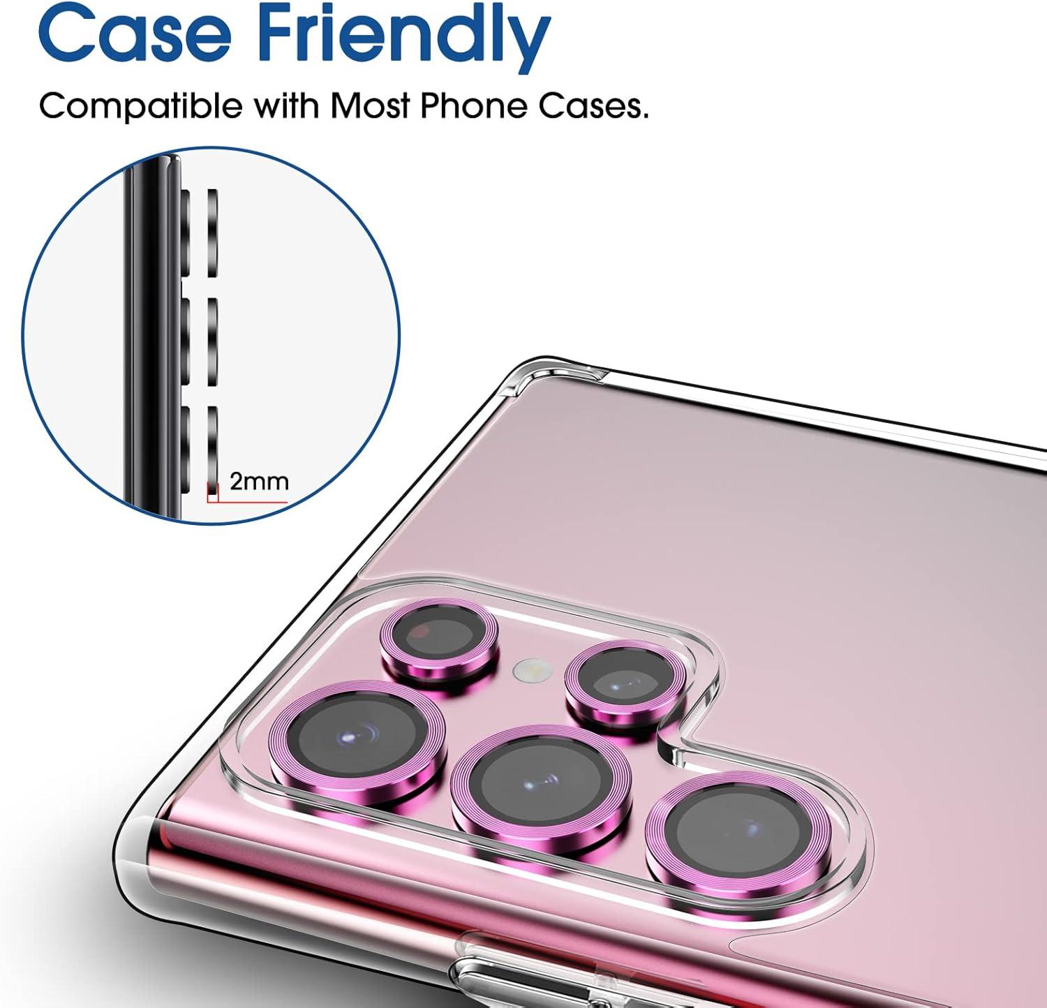 Case Friendly: Ultra thin-0.33mm thickness is reliable and resilient for Galaxy S22 Ultra 5G Camera Lens, compatible with most cases.