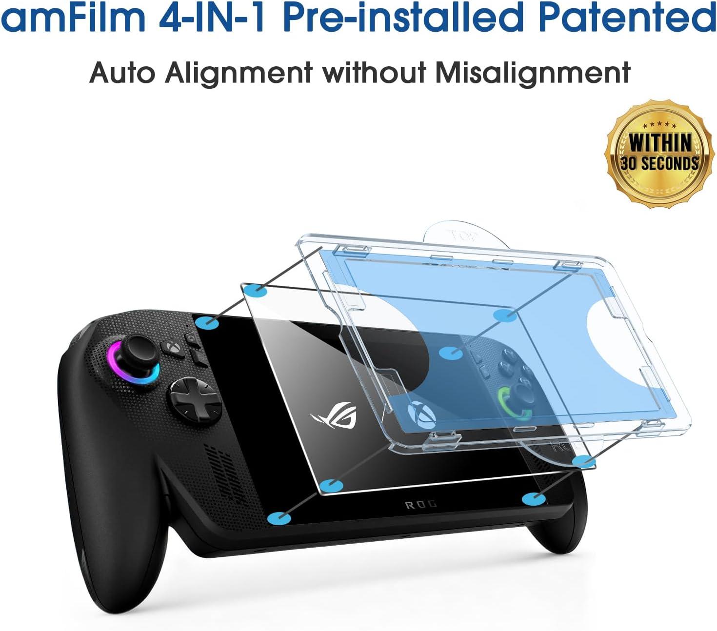 amFilm OneTouch Screen Protector Designed for ASUS ROG Ally 2023 /ROG Ally X 2024 7 inch – with Auto Alignment Kit, Bubble Free, Tempered Glass, 2 Pack