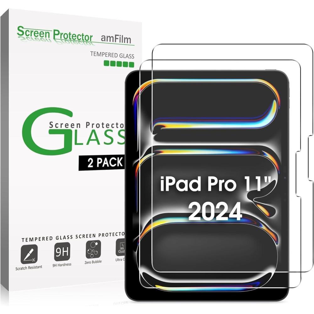 amFilm Screen Protector for iPad Pro 11 Inch OLED M5 [2025 Model] Tempered Glass [Face ID & Apple Pencil Pro & Case Compatible] [ Anti-Scratch] [99.99% HD Clear]